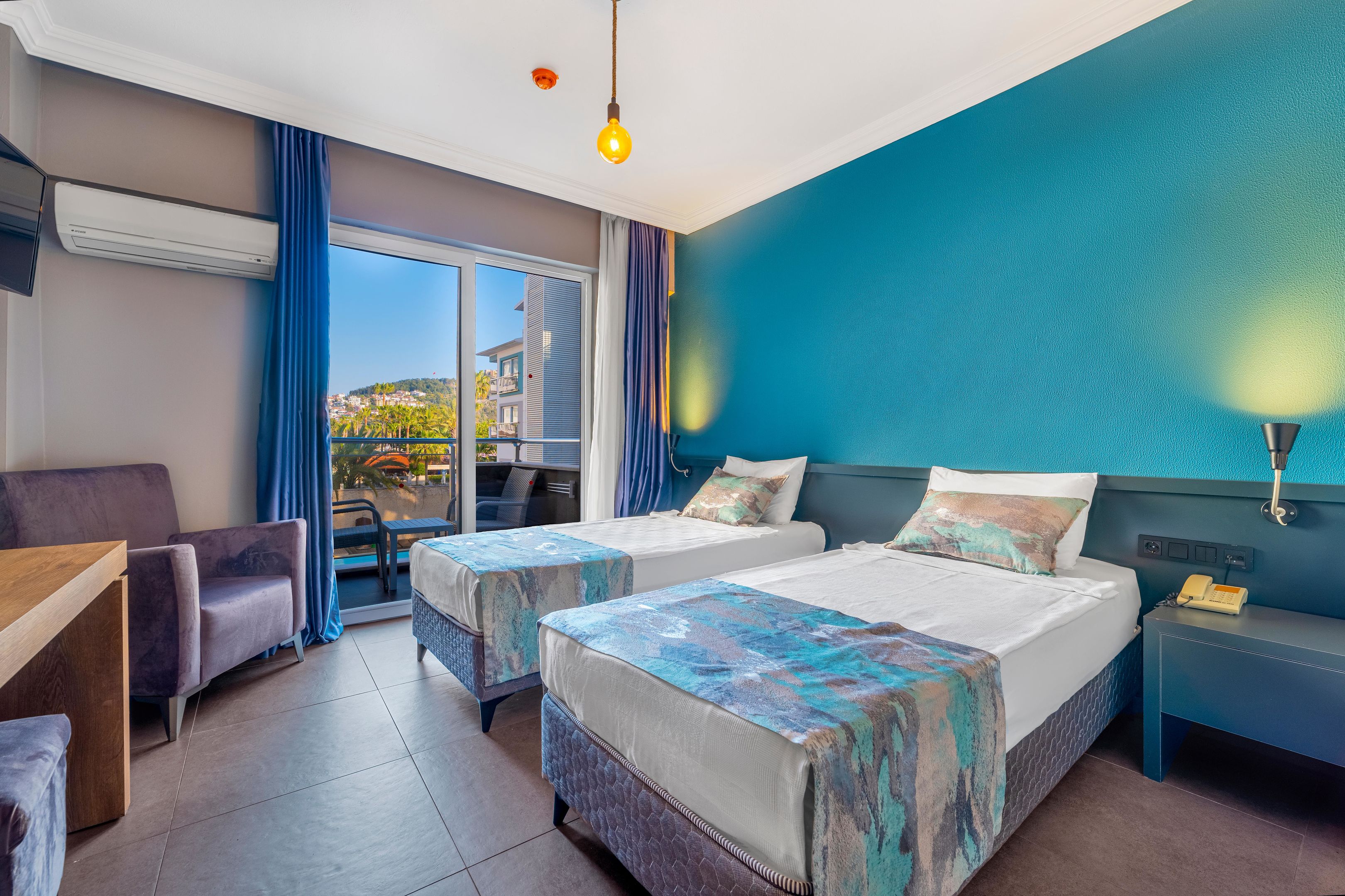 A szobákat légkondicionáló berendezéssel és fürdőszobával szerelték fel. A legtöbb szoba alapfelszereltségéhez erkély is tartozik. Ezen kívül van széf és minbár is. Az alapfelszereltséghez tartozik egy tea-/kávéfőző is. Egy TV-készülék és WiFi is a vendégek kényelmét szolgálja a nyaralás alatt. A fürdőszobákban található hajszárító. A hotel nem dohányzó szobákkal is rendelkezik.